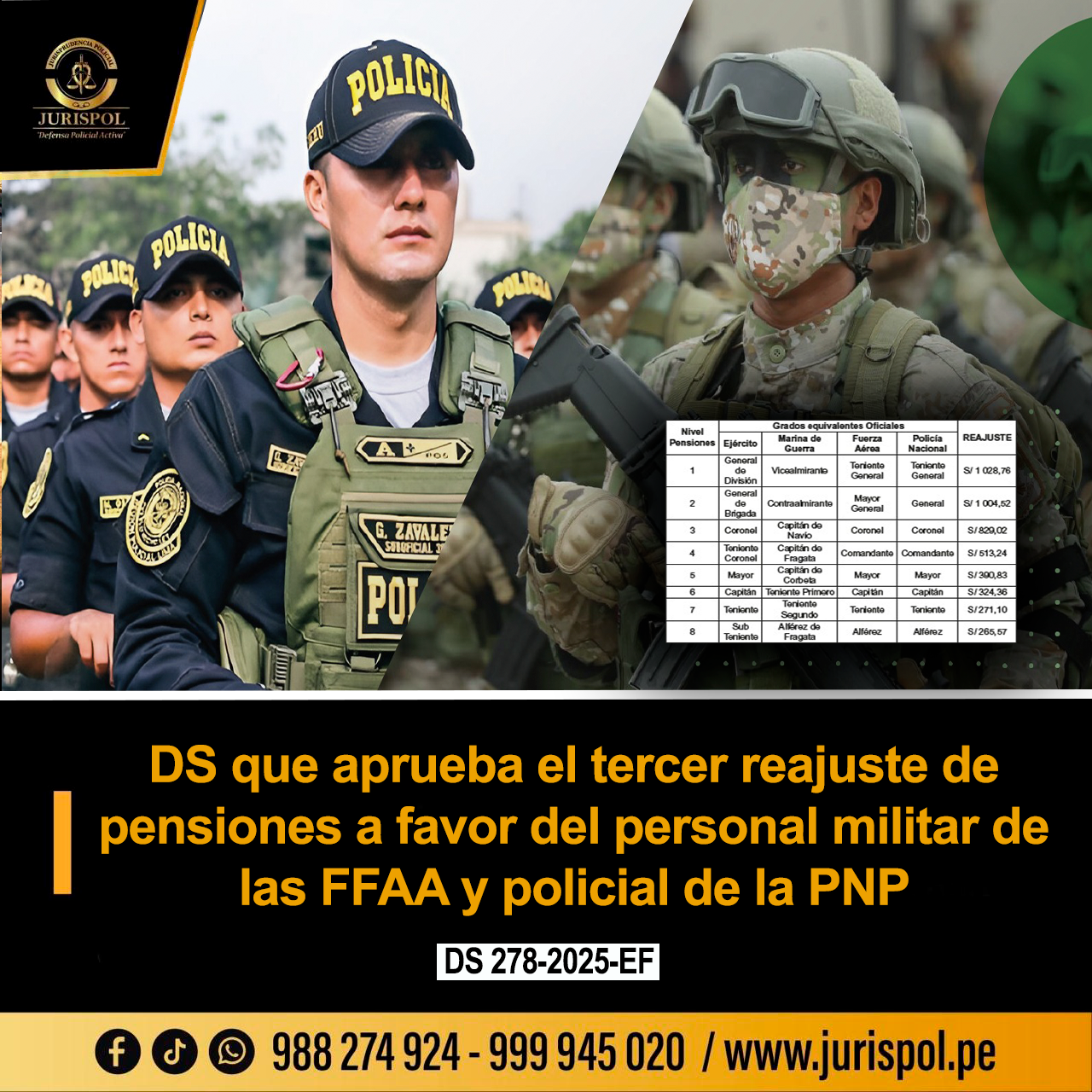 [Decreto Supremo] Mediante el Decreto Supremo N° 278-2025-EF, de fecha 01 de diciembre de 2025, a través del Ministerio del Interior y el Ministerio de Economía y Finanzas, se aprueba el tercer reajuste de pensiones a favor del personal militar de las Fuerzas Armadas y policial de la Policía Nacional del Perú ⇒DESCARGA AQUÍ⇐