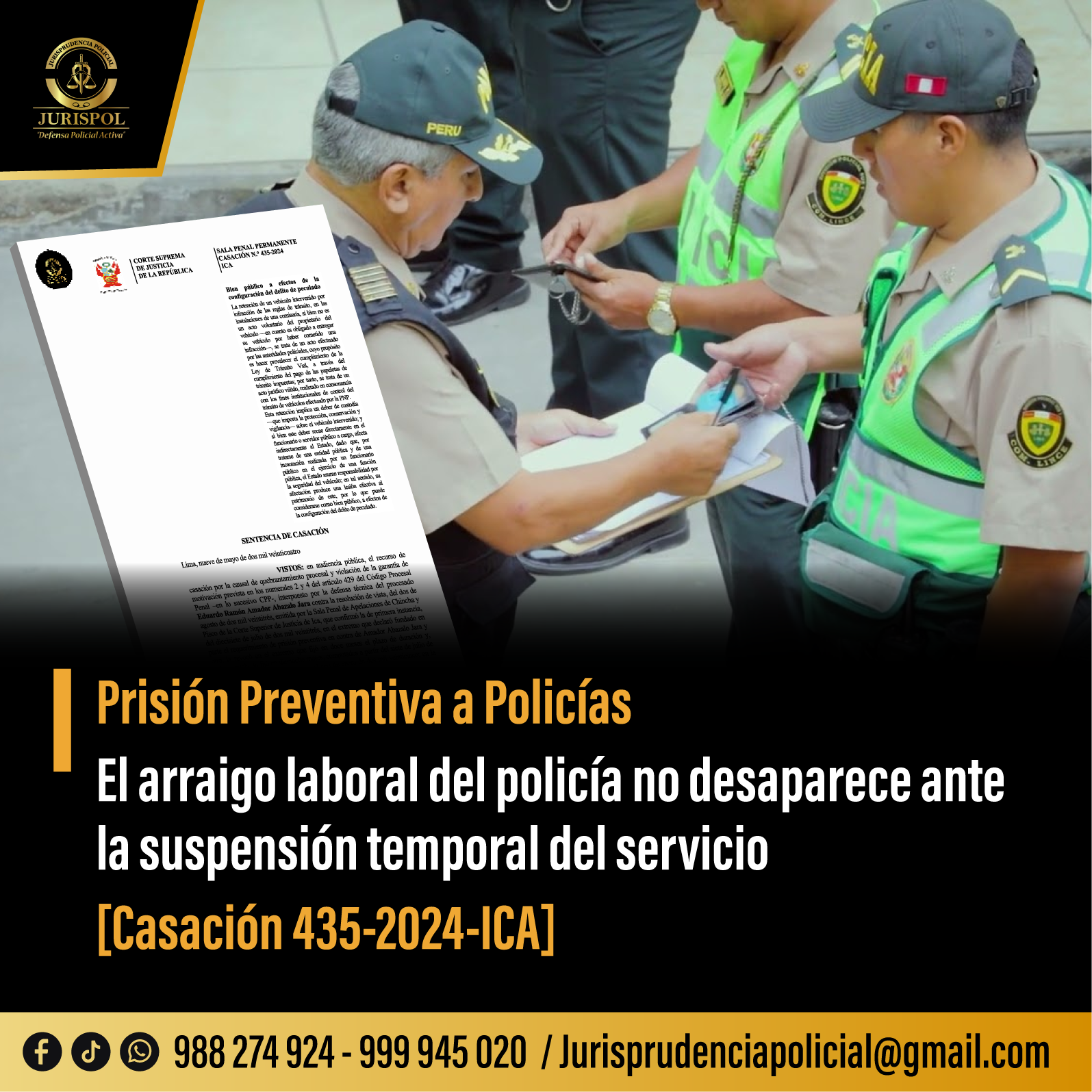 1.26. Respecto al arraigo laboral, el procesado es policía y está suspendido, por tanto, está acreditado que tiene trabajo y su actividad esencial se circunscribe a dicha condición, que no ha desaparecido, sino que, como bien dice la institución, está suspendido hasta que se determine su situación jurídica.
