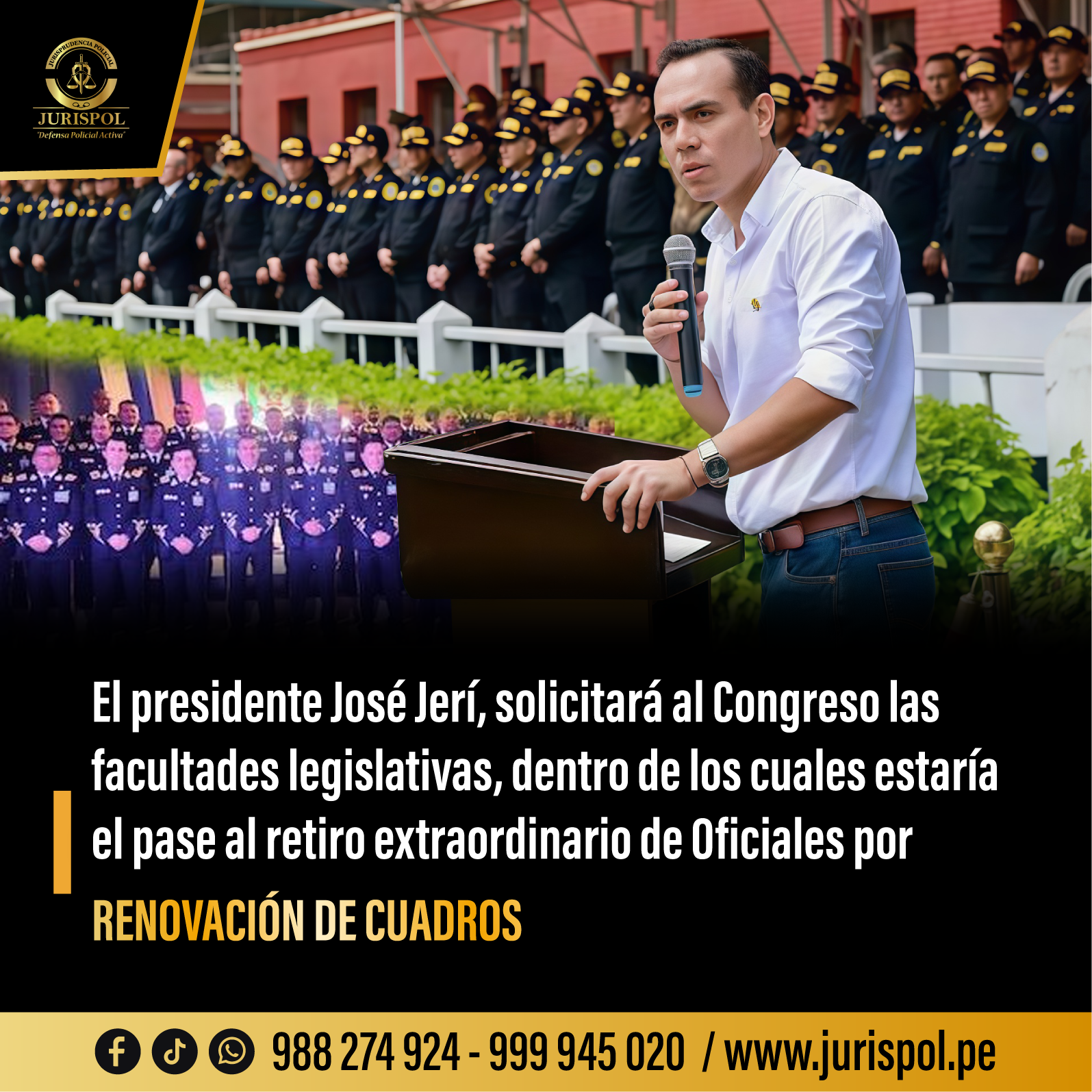 El presidente José Jerí, solicitará al Congreso las facultades legislativas, dentro de los cuales estaría al pase al retiro extraordinario por RENOVACIÓN DE CUADROS de Oficiales de la PNP