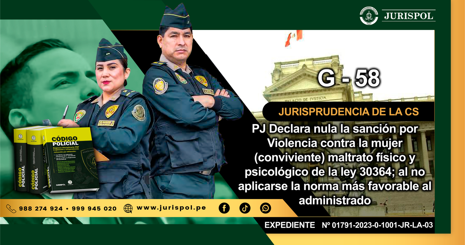 [Resoluciones de la Corte Superior] Mediante Sentencia de Vista del 05SET2024, recaída en la Resolución N° 10 en el Exp. 01791-2023-0-1001-JR-LA-03, la Segunda Sala Laboral de la Corte Superior de Justicia de Cusco se pronunció acerca de la infracción Muy Grave MG-80, que se relaciona con la infracción de Código G-58 «PJ Declara nula la sanción por Violencia contra la mujer (conviviente) maltrato físico y psicológico de la ley 30364; al no aplicarse la norma más favorable al administrado.» ⇒DESCARGUE AQUÍ⇐
