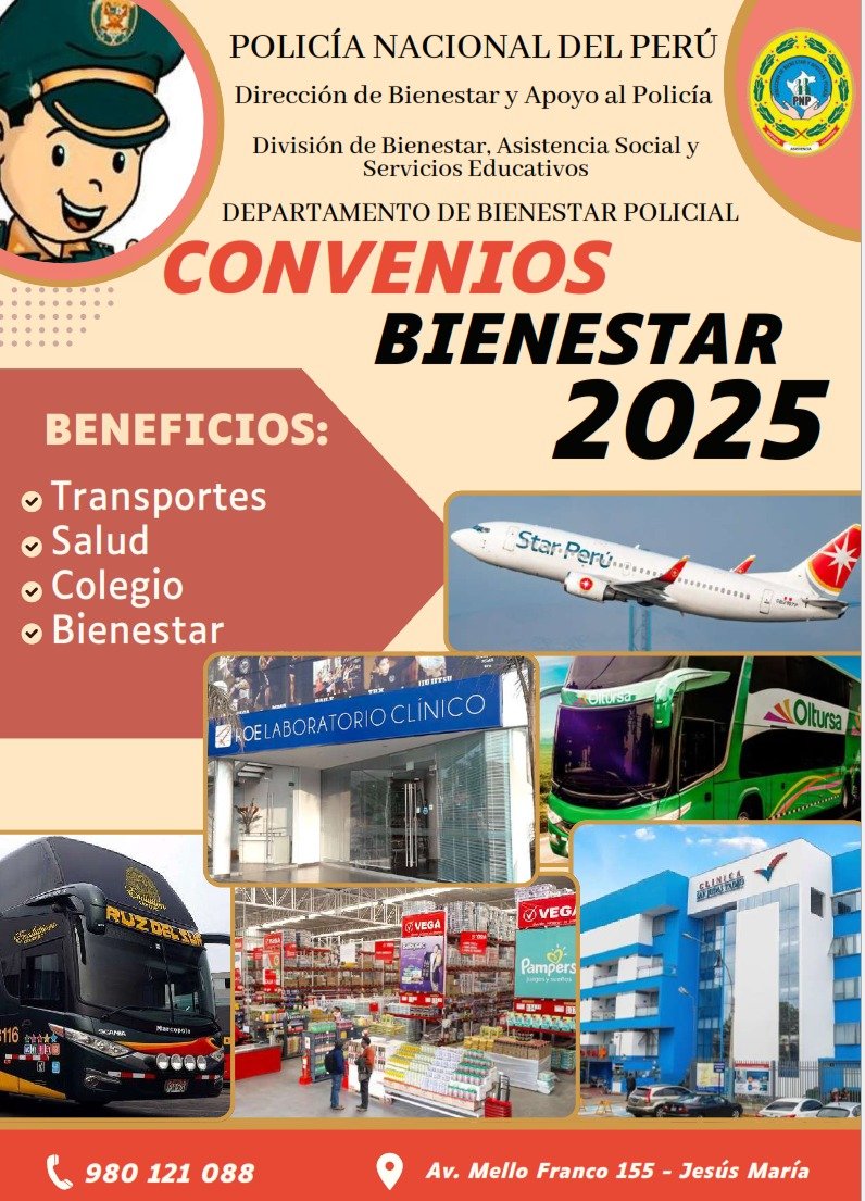 |Convenios PNP| La Dirección de Bienestar y Apoyo al Policía. División de Bienestar, Asistencial Social y Servicios Educativos. Departamento de Bienestar Social.- publicó la Guía de Convenios para la Policía Nacional del Perú [Actualizado a Julio de 2025]. ⇒DESCARGA AQUÍ⇐
