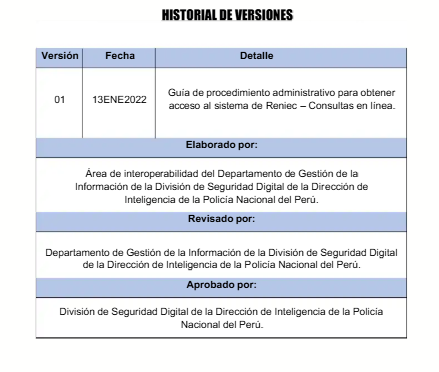 GUÍA DE PROCEDIMIENTO ADMINISTRATIVO PARA OBTENER ACCESO AL SISTEMA DE REGISTRO NACIONAL DE IDENTIFICACIÓN Y ESTADO CIVIL (RENIEC) -CONSULTAS EN LINEA