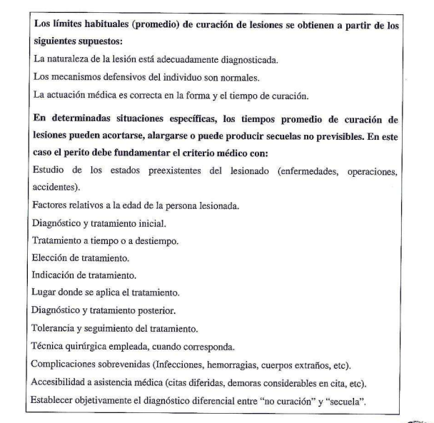 - El momento de producirse la lesión y el momento en que se estabiliza como secuela (momento en que no es posible obtener mayor grado de restitución/reparación biológica).