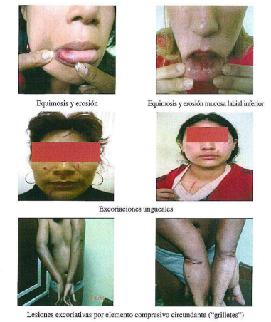 - Cualquier circunstancia o situación que se encuentre relacionada con el examen o delito investigado, como la presencia de familiares u otras personas durante el examen, lesiones antiguas como cicatrices, tatuajes, deformidades o malformaciones u otros signos identificatorios.