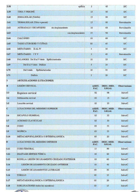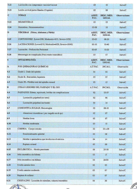 Después del Examen Clínico Forense el Médico Legista estará en la posibilidad de diagnosticar las lesiones que presenta el evaluado y podrá realizar la Valoración del Daño Corporal según tabla adjunta (Ver anexo 3); consignando el ítem salvo complicaciones, cuando no se pueda prever con certeza la evolución de la lesión.