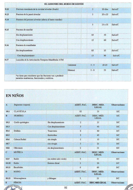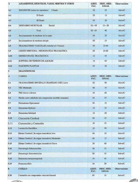 Las recomendaciones referidas a la evaluación clínica médico legal y los parámetros valorativos cuantitativos que se incluyen en la «Tabla Referencial de Valoración Médico Legal» son referenciales, pueden variar de acuerdo a «criterio médico» 1.2.3 del evaluador.