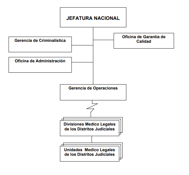 II. Organización de la Jefatura Nacional del Instituto de Medicina Legal.