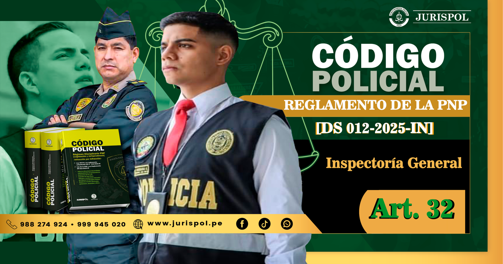 [Reglamento de la Ley de la PNP] Mediante el DS 012-2025-IN, publicado el 05NOV2025, se aprobó el Reglamento de la Ley de la Policía Nacional del Perú; a través del área de redacción y observatorio jurídico de Jurisprudencia Policial – JURISPOL, se ha elaborado y seleccionado criterios estratégicos que permiten aplicar correctamente esta normativa. Artículo 32. Inspectoría General.