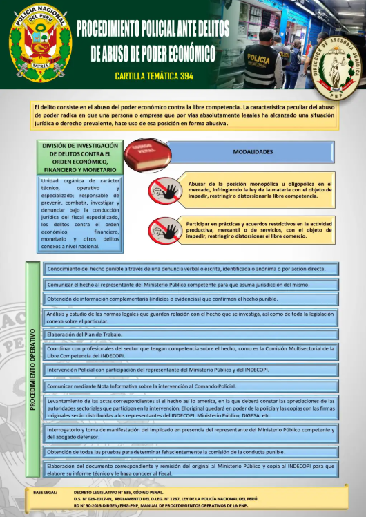[Cartilla Temática PNP] Mediante La Dirección de Asesoría jurídica de la PNP, el 09ABR2024 , oficializó la elaboración y difusión de la CARTILLA TEMÁTICA 394-2024, «Procedimiento Policial Ante Delitos de Abuso de Poder Económico»; como herramienta técnica y especializada de carácter jurídico para el empoderamiento del servicio policial. ⇒DESCARGA AQUÍ⇐