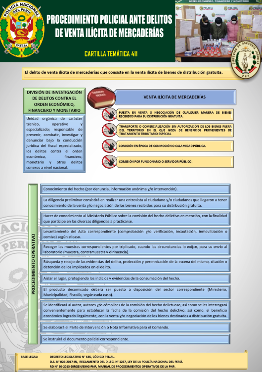 [Cartilla Temática PNP] Mediante La Dirección de Asesoría jurídica de la PNP, el 14JUN2024 , oficializó la elaboración y difusión de la CARTILLA TEMÁTICA 411-2024, «Procedimiento Policial Ante Delitos de Venta Ilícita de Mercaderías»; como herramienta técnica y especializada de carácter jurídico para el empoderamiento del servicio policial. ⇒DESCARGA AQUÍ⇐