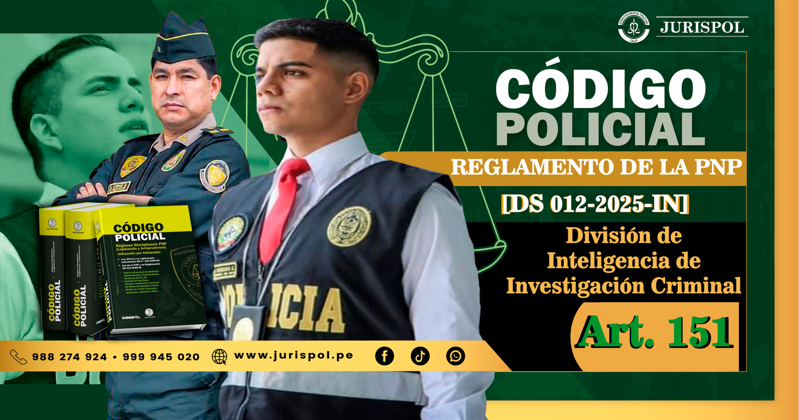 [Reglamento de la Ley de la PNP] Mediante el DS 012-2025-IN, publicado el 05NOV2025, se aprobó el Reglamento de la Ley de la Policía Nacional del Perú; a través del área de redacción y observatorio jurídico de Jurisprudencia Policial – JURISPOL, se ha elaborado y seleccionado criterios estratégicos que permiten aplicar correctamente esta normativa. Artículo 150.División de Inteligencia de Investigación Criminal.