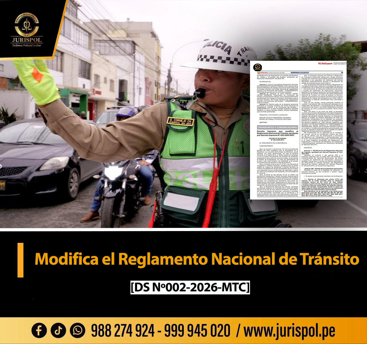 [Decreto Supremo] Mediante el Decreto Supremo N° 002-2026-MTC, publicado el 15ENE2026, a través del Ministerio de Transportes y Comunicaciones se modificó un artículo del Reglamento Nacional de Tránsito. ⇒DESCARGA AQUÍ⇐