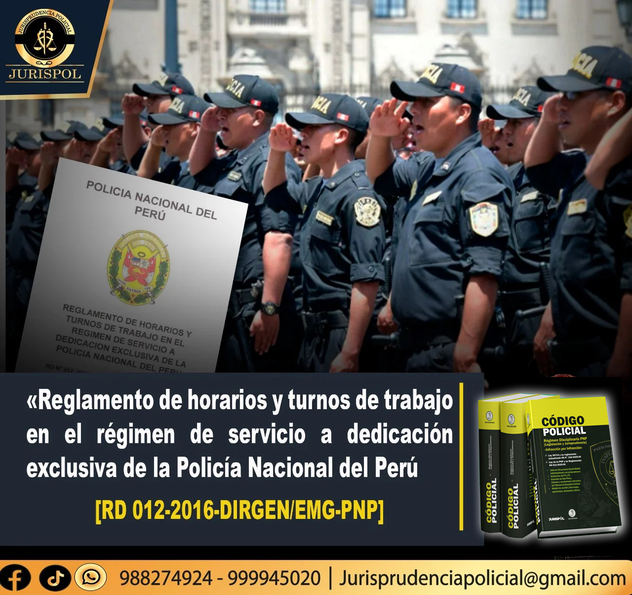 |Reglamentos PNP| La Dirección General de la Policía Nacional del Perú (Ahora COMGEN PNP), mediante RD. 12-2016-DIRGEN /EMG-PNP, del 19 de enero de 2016, aprobó el reglamento de horarios y turnos de trabajo en el régimen de servicio a dedicación exclusiva de la policía nacional del Perú. ⇒DESCARGA AQUÍ⇐