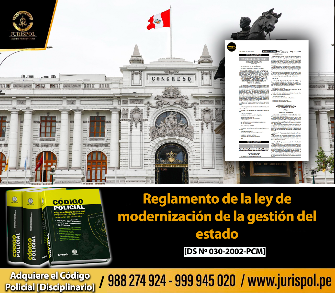 [Decreto Supremo] Mediante el N° DS 030-2002-JUS, publicado el 03MAY2002, aprueba el reglamento de la Ley Marco de Modernización de la Gestión del Estado Ley Nº 27658. [DESCARGA AQUÍ]