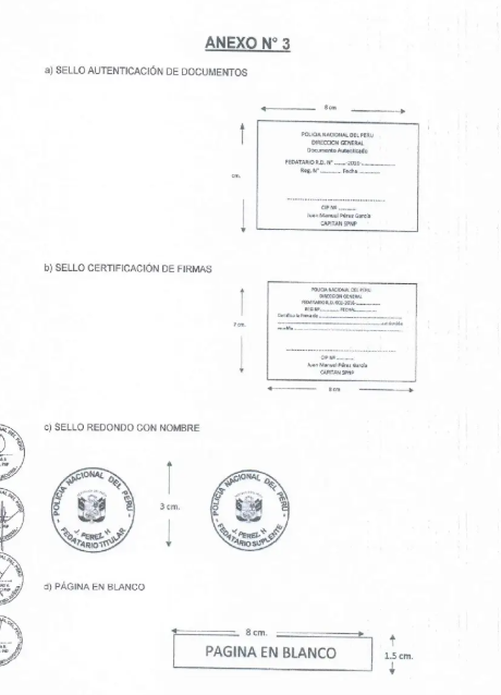3. Efectuada dicha verificación, el fedatario coloca el sello «CERTIFICACIÓN DE FIRMA, conforme al ANEXO N° 3, dando fe de la autenticidad de la firma contenida en el documento presentado a la vista.
