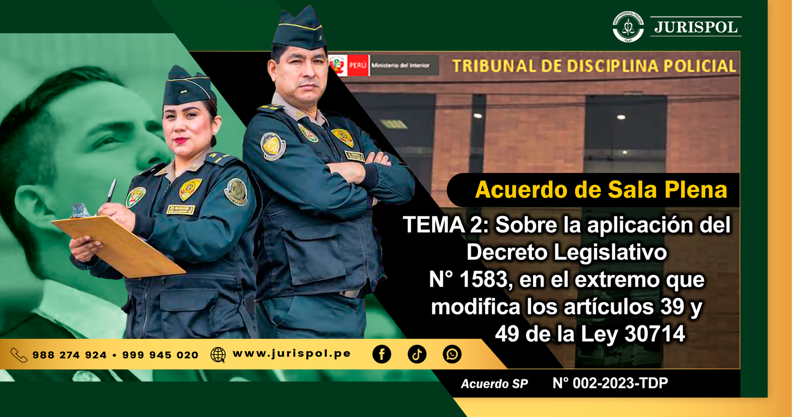 [Acuerdo de Sala plena del TDP] Con fecha 12 de diciembre de 2023, se publicó en el diario oficial «El Peruano» el TEMA 2 del Acuerdo de Sala Plena N°. 001-2023, aprobado mediante la Resolución de Presidencia N°. 013-2023-P-TDP/IN, del 01DIC2023, sobre la aplicación del DL 1583, en el extremo que modifica los artículos 39 y 49 de la Ley 30714 ⇒DESCARGA AQUÍ⇐