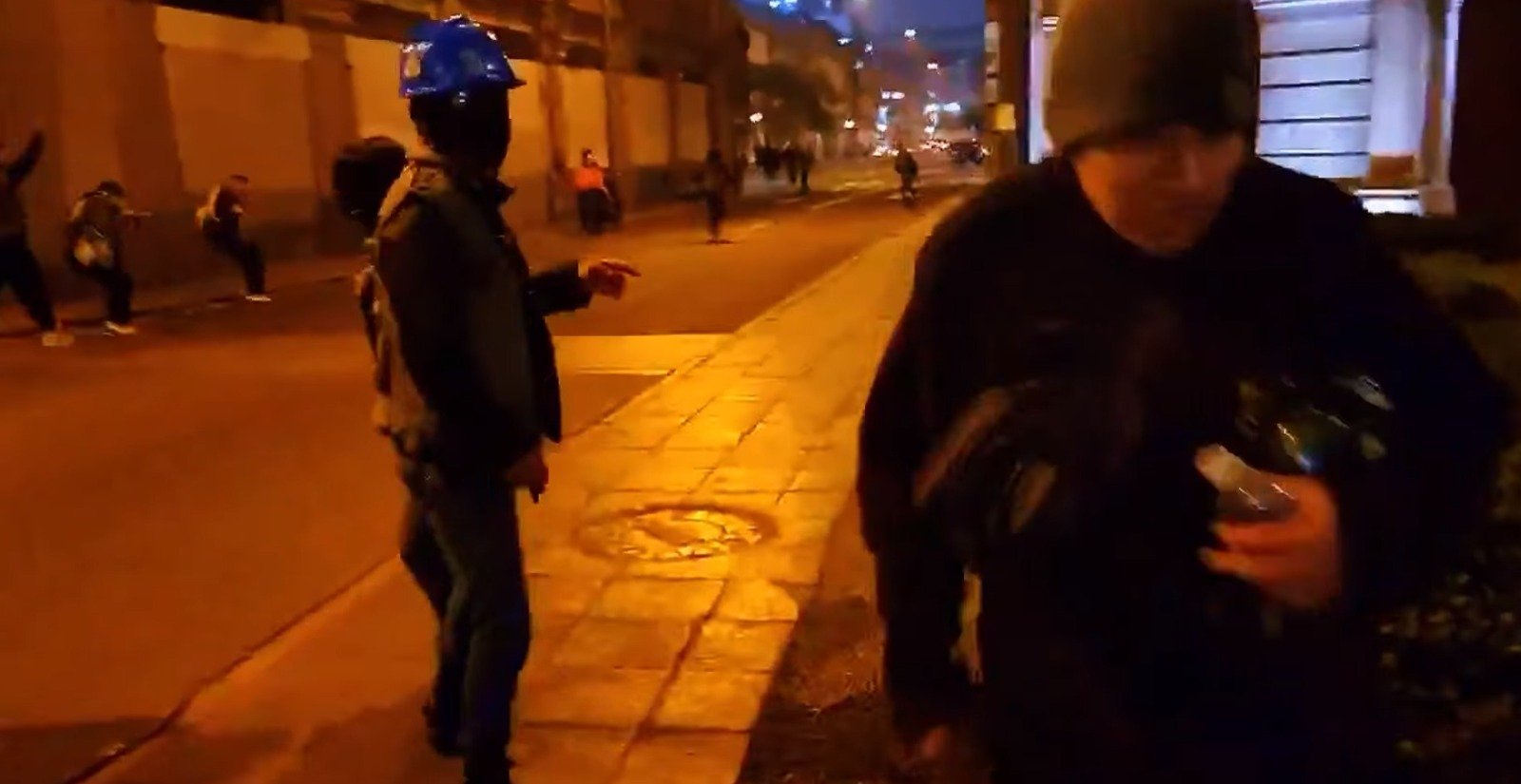 Video inédito revela momento en que Eduardo Mauricio Ruiz Sáenz pierde la vida cuando protesta ya había culminado, por sujeto en proceso de identificación Lima, 16 de octubre de 2025 — Un video difundido en redes sociales muestra el preciso instante en que Eduardo Mauricio Ruiz Sáenz, de 32 años, conocido como “Trvko”, pierde la vida tras recibir un impacto de bala en el tórax al término de las protestas registradas el pasado 15 de octubre en el centro de Lima. Según las imágenes, el hecho ocurrió cuando los manifestantes ya se retiraban por las inmediaciones de la Plaza Francia, luego de una jornada de movilizaciones que, hasta ese momento, no había dejado víctimas mortales. En el registro se observa a un sujeto que, sin motivo aparente, y a mansalva realiza un disparo que impacta directamente en Ruiz Sáenz. Durante los enfrentamientos ocurridos horas antes, más de 50 efectivos policiales resultaron heridos, debido a que varios grupos de manifestantes actuaron con violencia, empleando piedras, palos, combustible y material pirotécnico.