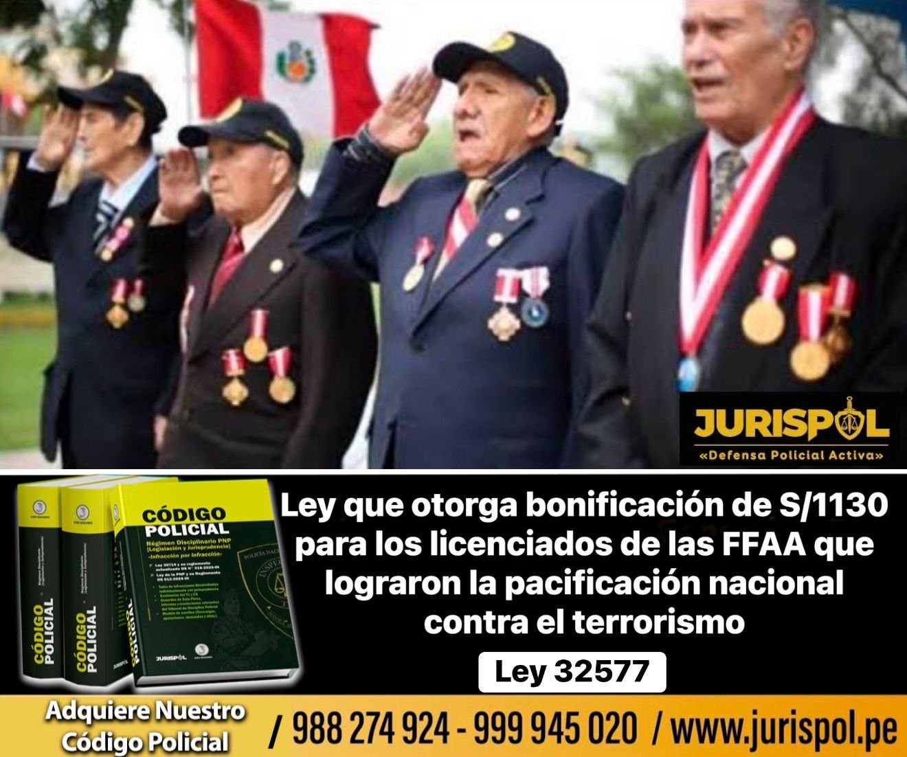 [Leyes] Con fecha 14ABR2026 se publicó en el diario Oficial el Peruano la Ley 32577 – «Ley que otorga una bonificación económica excepcional para los licenciados veteranos de la pacificación nacional». ⇒DESCARGA AQUÍ⇐